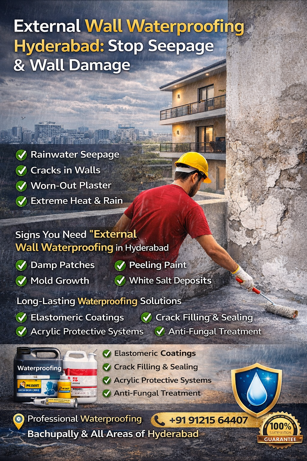 πŸ“ž Book External Wall Waterproofing Hyderabad Inspection Today